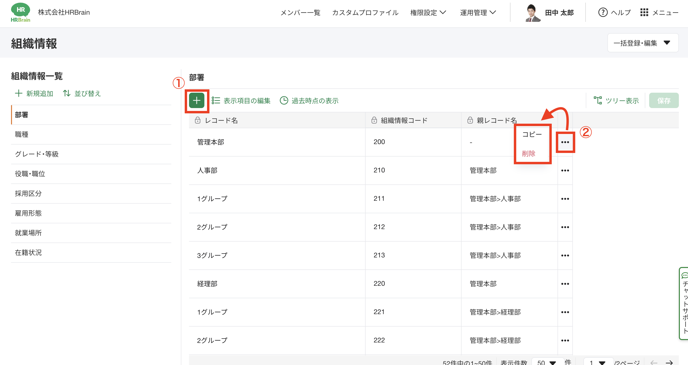 部署情報をCSVで一括登録・編集したい場合は下記ヘルプページをご覧ください。