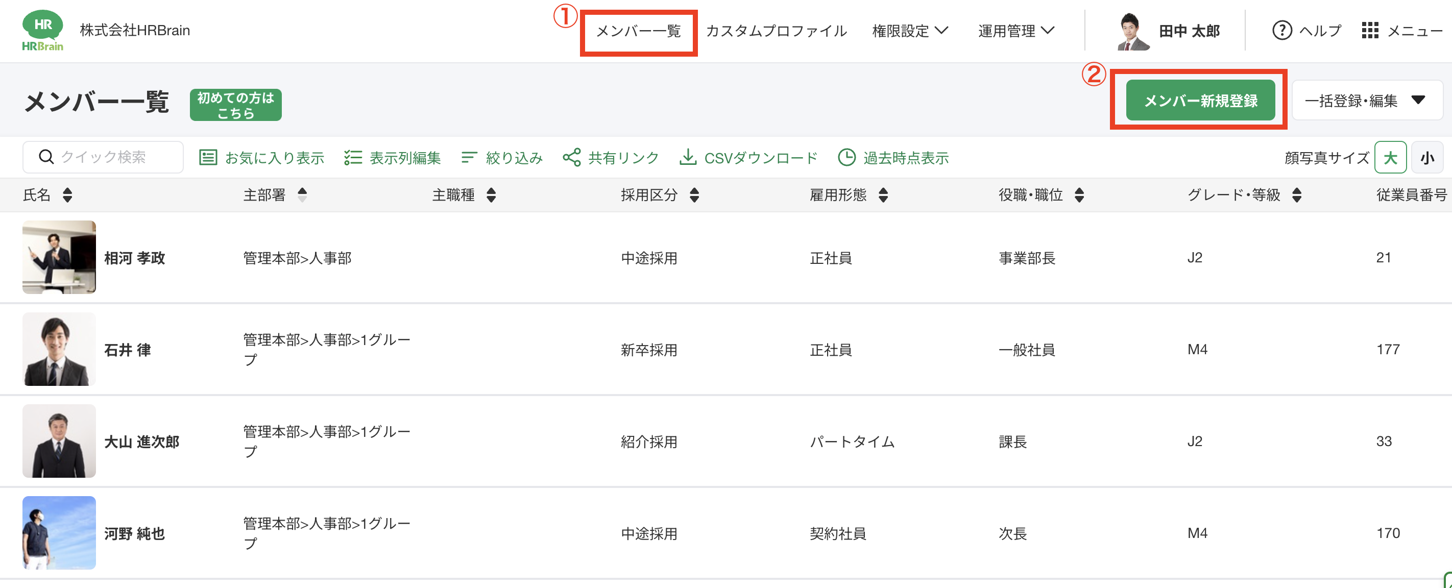 メンバー一覧画面の「メンバー新規登録」ボタンから新規登録することができます。