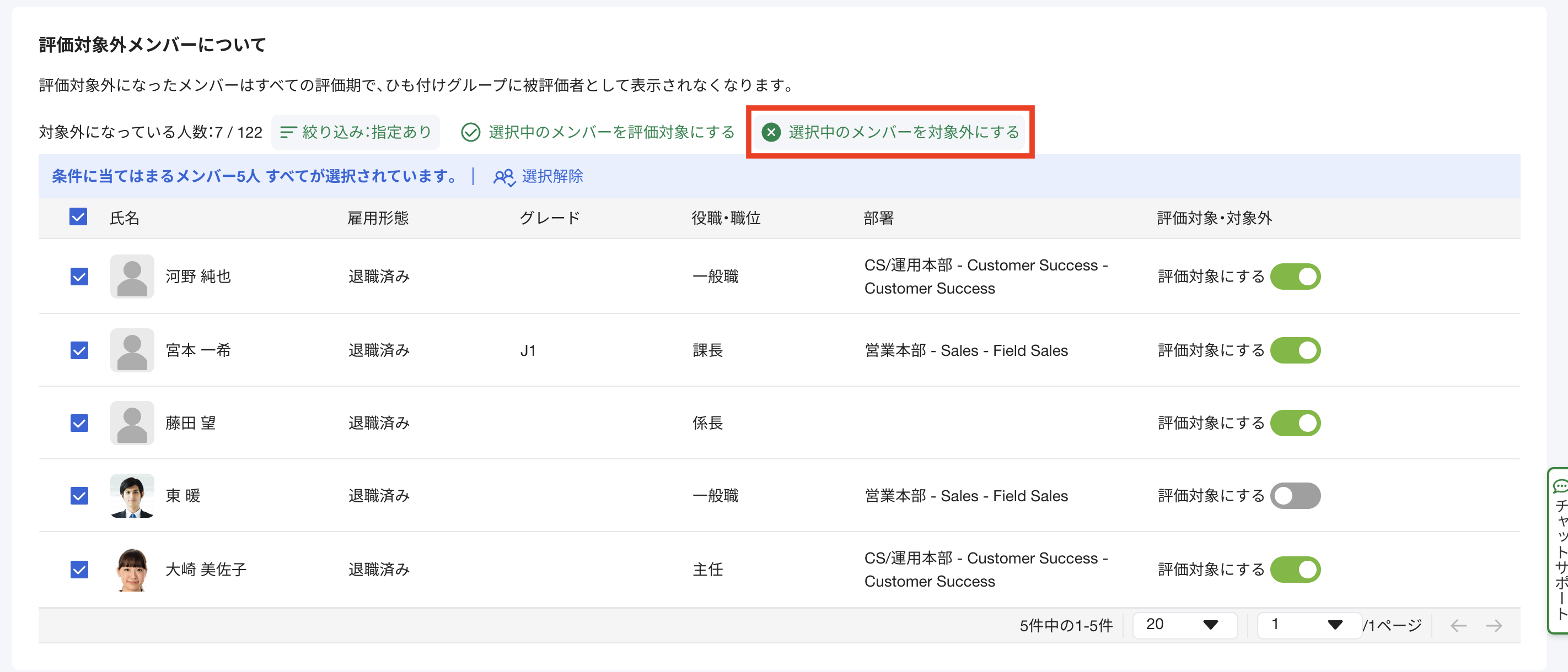 退職者を一括で評価対象外メンバーとして設定する方法について説明します。