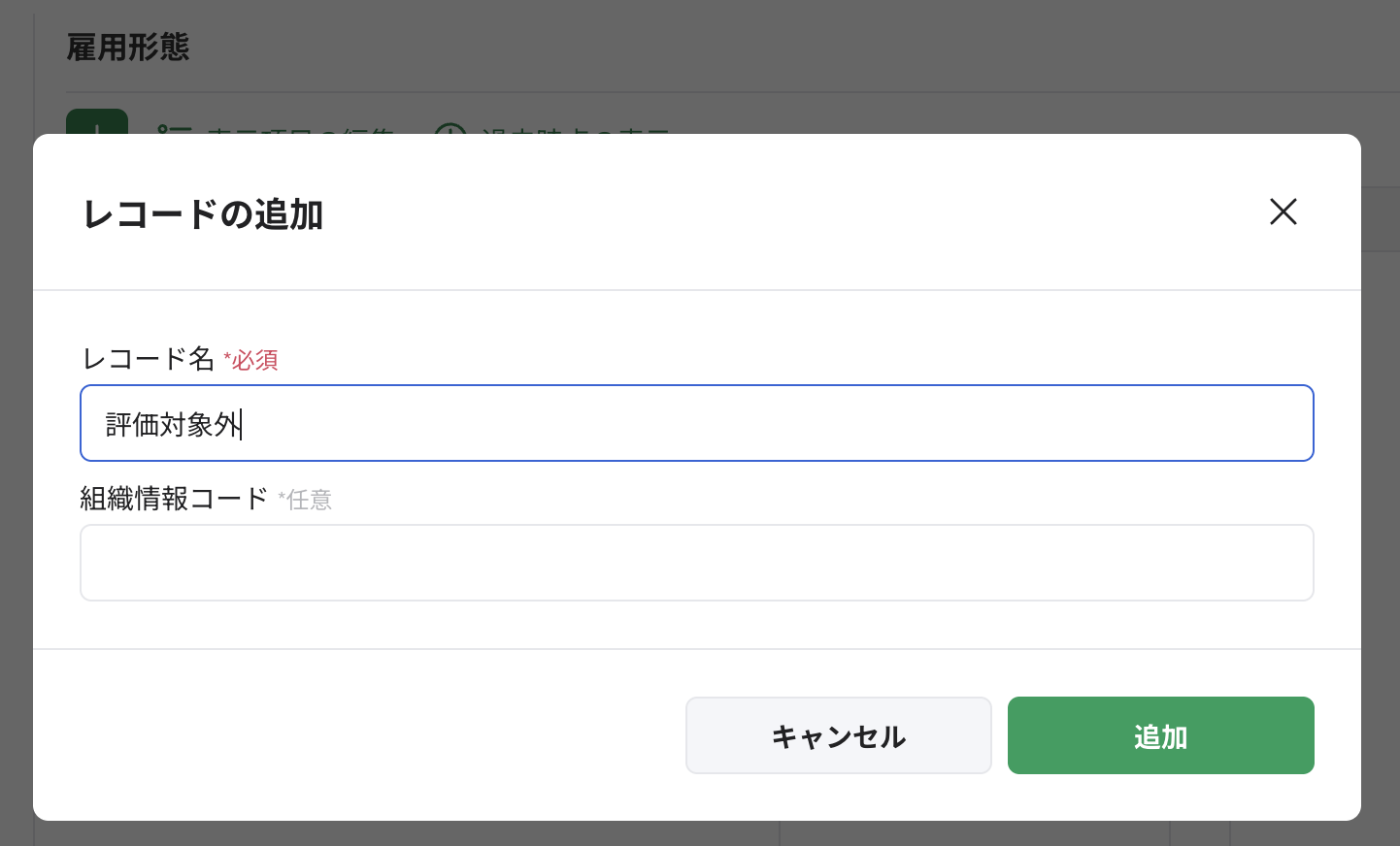 例)[組織情報>雇用形態]にレコードを追加する