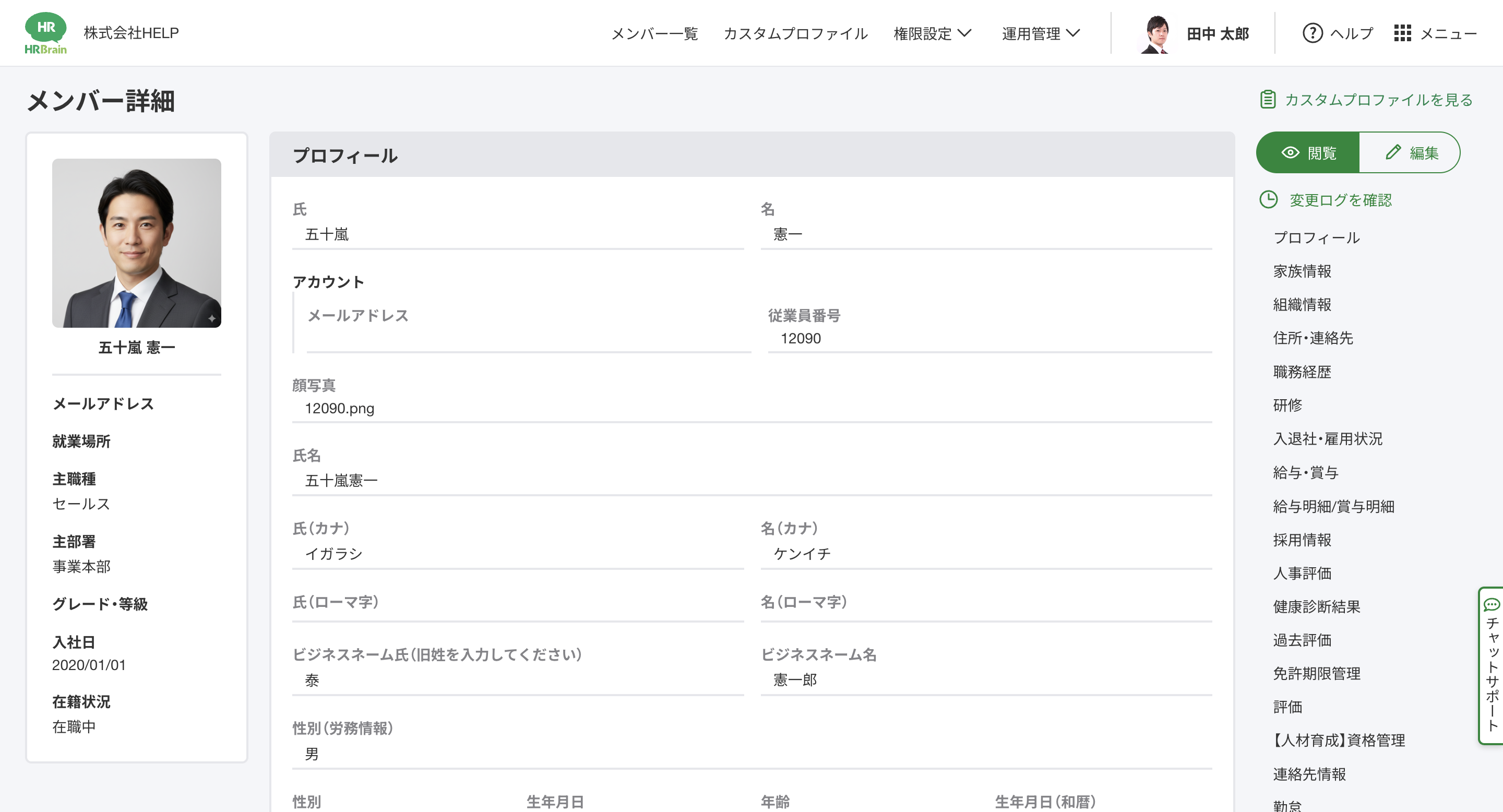 社員名簿/メンバー詳細画面で[労務情報]の項目が表示されない