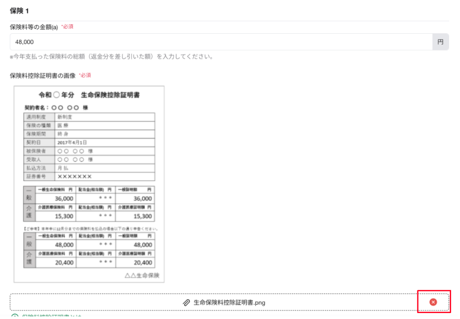 添付書類名に右端にある赤バツをクリックし削除してください。